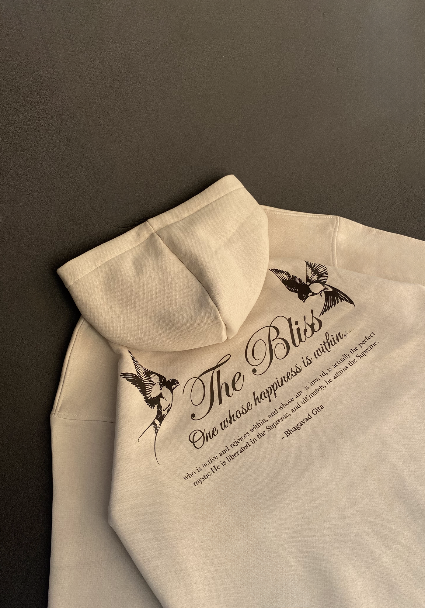 ” In the ‘Bliss’ design, I aimed to create a piece that embodies a profound life message inspired by the teachings of the Bhagavad Gita, a book I deeply value for its wisdom. The two birds depicted on the sides symbolize peace and harmony, enhancing the design’s overall aesthetic and giving it a luxurious finish. This artwork serves as a reminder to seek balance and tranquility in our lives.”